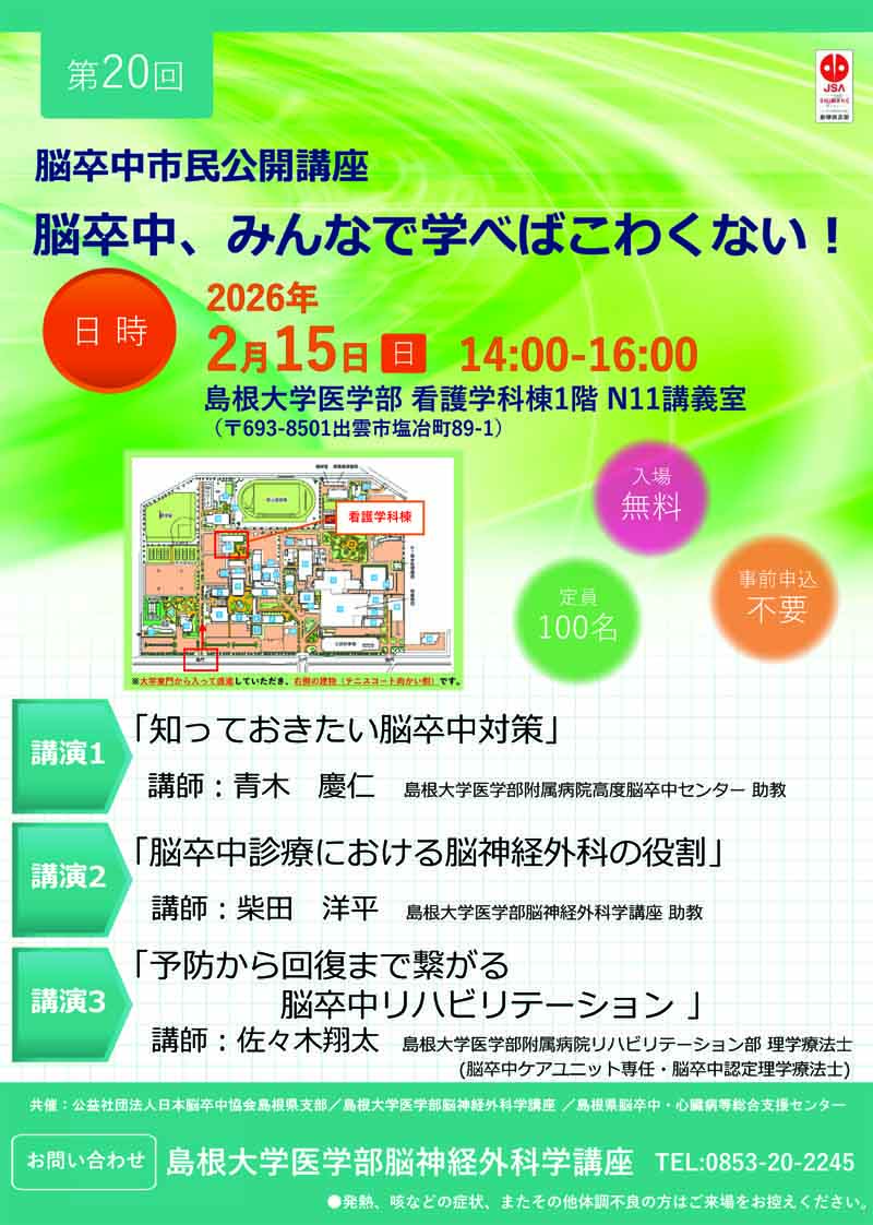 共催:日本脳卒中協会島根県支部、島根大学医学部脳神経外科