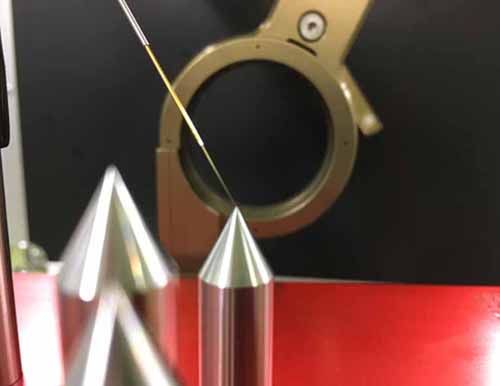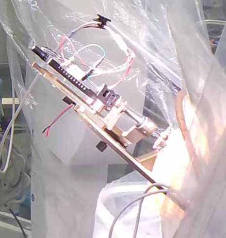 術中の様子で、ターゲットの15mm前から微小駆動で電極を挿入している。