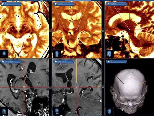 手術前に電極とターゲットのズレを確認している。
