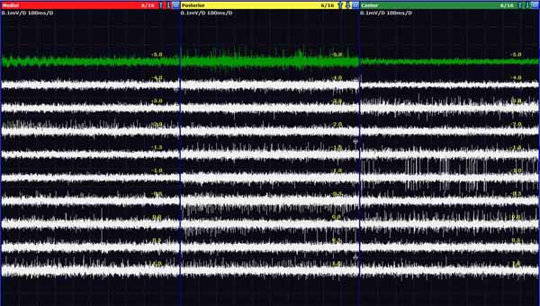 術中のモニターでステップ毎に細胞の電気活動を記録して、神経核を同定している。