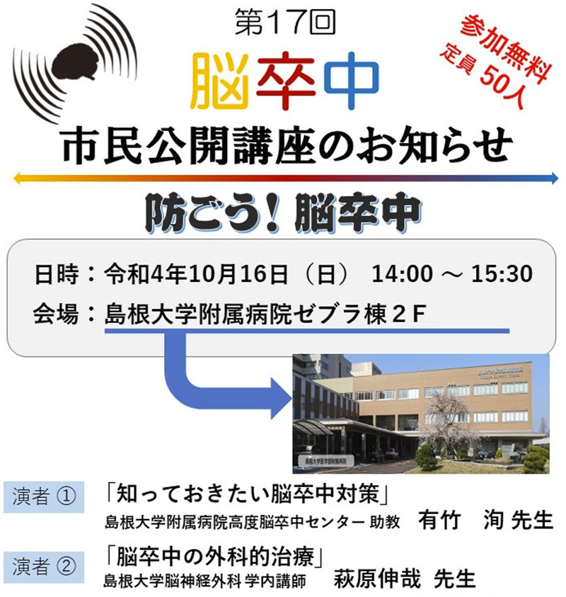 共催:日本脳卒中協会島根県支部、島根大学医学部脳神経外科