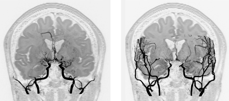 術後:外から発達した血管が脳を栄養していることがわかります。