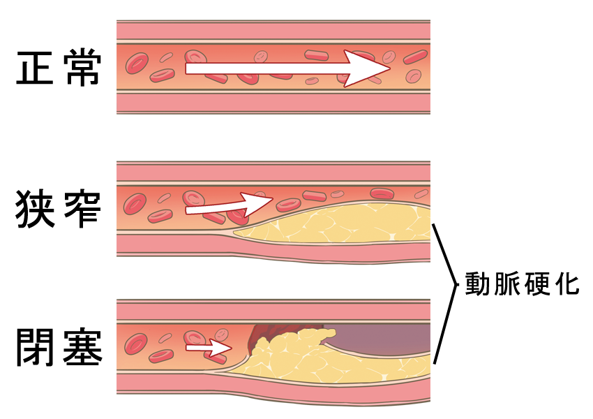 動脈硬化は、高血圧や高脂血症、糖尿病といった生活習慣病や、喫煙・飲酒などの嗜好によって進行することが知られています。